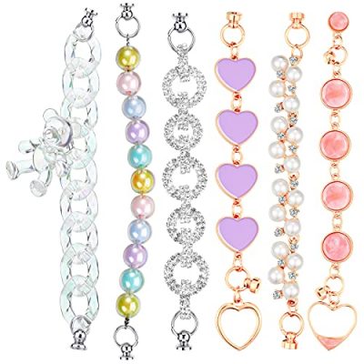 The Frienda 6 Pieces Phone Chain Phone Case Colorful Pearls Chain Bracelet Strap Drop Resistance Phone Grip Holder is the perfect accessory to add some glitz and glamour to your phone case. This package includes 6 different styles of phone chains with eye-catching colors like purple, pink, silver, and white. Made of resin and plastic, these chains glitter under the sunshine, instantly boosting your mood. The various shapes, including heart-shaped, shell-shaped, and pearl-shaped chains, allow you to choose according to your mood or dressing. With a stylish design, you can easily attach the chain to your phone case or wear it as a wristband. However, keep in mind that this chain is only compatible with soft mobile phone cases that can be drilled easily. Overall, this phone chain is a fun and fashionable accessory for your phone case.