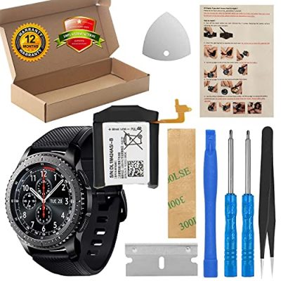 Revitalize your Samsung Gear S3 Frontier or Gear S3 Classic with the [430mAh] Replacement Battery. This battery is compatible with various models and delivers high capacity performance with its A+ class batteries. It comes with a complete set of professional maintenance tools for easy installation. Each battery undergoes strict quality control and is certified for safety and efficiency. With a longer battery life and lower power consumption, this replacement battery will enhance the performance of your smartwatch. Make sure to fully charge and discharge the new battery for optimal performance. Watch relevant battery replacement videos on YouTube for hassle-free installation. Overall, this replacement battery offers great value and reliability.