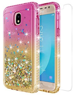 The NGB Liquid Glitter Case for Samsung Galaxy J3 offers a beautiful and vibrant design that will catch anyone's attention. The liquid glitter flows freely within the case, creating a stunning visual effect that is both breathtaking and stress-relieving. Made with high-quality soft TPU material, this slim clear case is flexible and bendable to prevent cracking and leakage. The case is also made of safe and scentless materials, ensuring it is harmless to your health. With its compatibility with a wide range of Samsung Galaxy J3 models and its leak-worry-free design, the NGB Liquid Glitter Case is a perfect choice for anyone looking for style, durability, and functionality. Overall, customers have praised its perfect fit, great quality, and beautiful design.