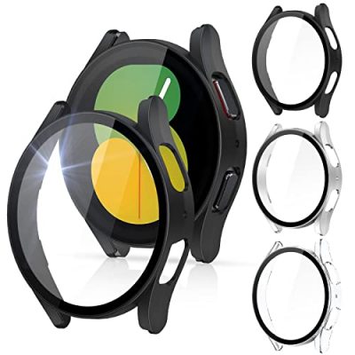 The KIMILAR Galaxy Watch 4&5 40mm Screen Protector Case provides maximum protection for your watch from sweat, dust, and fingerprint oil residue. It features an ultra-thin tempered glass screen protector, allowing for a highly transparent and responsive touch screen. The case is made of hard PC material, ensuring durability and preventing falls. It has precise cutouts for easy access to all controls and functions, and it can be worn while charging. The combination of the screen protector and protective case prevents water and fog from affecting the touch screen, making it convenient for daily activities. With a 5+5 pack, this product offers great value for money. Available in various colors, it is compatible with Samsung Galaxy Watch 5 40mm and Galaxy Watch 4 40mm.