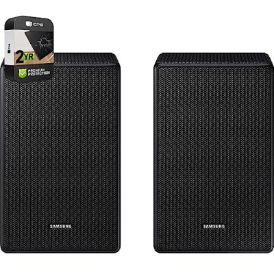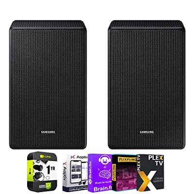 The SAMSUNG SWA-9500S Wireless Rear Speaker Kit is a bundle that includes two wireless rear speakers with Dolby Atmos/DTS:X technology. It comes with the Tech Smart USA Audio Entertainment Essentials Bundle, which provides 3 months of Aaptiv Workout, 1 year of Brain.fm, 1 year of FlixFling, and 3 months of PlexTV. Additionally, it offers 1 year of extended protection in addition to the included full manufacturer protection. These speakers have dimensions of 5.60Lx4.90Wx8.00H. With a 4.8/5 customer rating, users have praised the upgrade, seamless connectivity, and enhanced sound quality it provides. The SAMSUNG SWA-9500S Wireless Rear Speaker Kit is a great addition to any Samsung sound bar system.