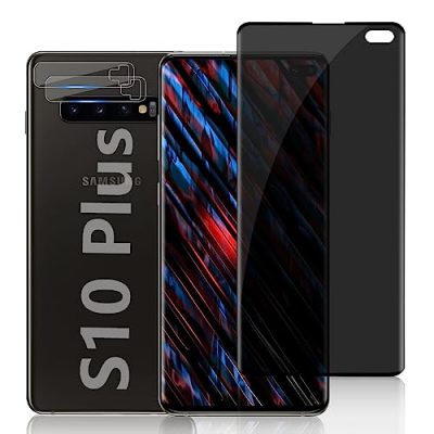 The [1+2 Pack] Galaxy S10 Plus 5G Privacy Screen Protector offers exclusive privacy protection and comes with two camera lens protectors. The privacy tempered glass ensures that the screen is only visible to the person directly in front of it, keeping your personal information hidden from strangers. It is compatible with the Samsung Galaxy S10 Plus 6.4 inch and does not affect facial recognition and password unlocking. The installation is easy and bubble-free, with one-touch ultra-light automatic adsorption. The tempered glass is 9H hardness and provides maximum coverage, while the camera lens protector effectively protects the lens from scratches. The product has received a customer rating of 4.0/5.
