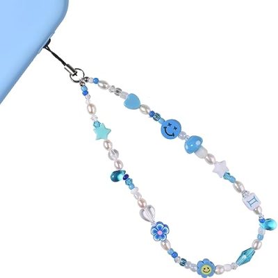 The AULSIEY Beaded Phone Charm Strap is a stylish and trendy accessory for your cell phone. Made with pearls, colorful acrylic beads, and polymer clay, this phone lanyard is durable and not easy to break. It features a cute and fashionable design that can be matched with your phone case and y2k clothes. The rope is strong enough to hold items like phones, keychains, ID cards, and more. With a length of 12 inches, it can be extended up to 2.5 inches. This phone charm strap is 100% handmade and each piece may vary slightly. Overall, it is a perfect summer accessory that adds a youthful atmosphere to your phone.