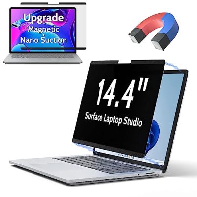 The Peslv Magnetic Privacy Screen is designed specifically for the Microsoft Surface Laptop Studio 14.4-inch model released between 2021 and 2022. With a removable design and a convenient storage clip, this privacy screen is perfect for protecting your screen privacy in various settings such as offices, airports, cafes, and trains. The screen features a unique installation method using magnetic and nano suction, making it incredibly easy to install and remove. It offers stunning privacy protection with narrow visibility angles and also protects your eyes by reducing blue light and UV light. The high-grade materials and craftsmanship ensure a high-definition screen with unparalleled picture quality. Please note that while the screen is compatible with various Surface laptop models, it may not fit all devices perfectly.