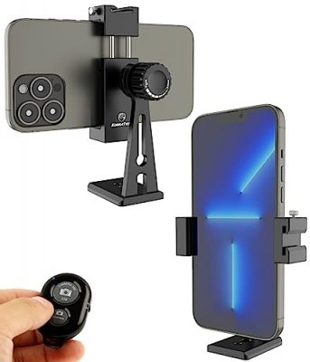 The KobraTech Metal Cell Phone Tripod Mount – UniMount 360 Pro Heavy Duty iPhone Tripod Mount with Bluetooth Remote Shutter is a versatile and durable tripod mount for smartphones. It securely holds any size smartphone, including the iPhone 14 Pro Max, Samsung Galaxy S23 Ultra, and more. Made out of industrial grade metal, it offers maximum stability and durability. With its 360° swivel feature, you can easily switch your phone between landscape and portrait mode. The mount also features a cold shoe mount for accessories, ¼ inch & 3/8 inch screw hole mounting threads, and comes with a Bluetooth Remote Shutter. It is designed to be rugged and functional with a 1-year warranty. Overall, it is a great tripod mount for photographers and videographers.