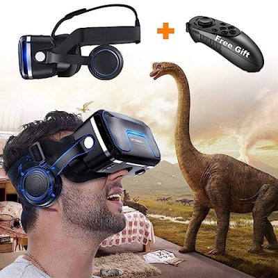 Experience virtual reality with the VR Headset Virtual Reality Headset 3D Glasses. With a wide viewing angle, anti-blue-light lenses, and a comfortable design, this headset is perfect for all smartphones under 6.3 inches. It is compatible with iPhone, Samsung, HTC, HP, LG, and more. The headset comes with built-in headphones and Bluetooth connectivity, providing an immersive audio experience. Its anti-blue light lenses make it suitable for kids, protecting their eyes during use. Whether you use it for gaming or watching movies, this VR headset offers an effective and comfortable virtual reality experience. It can also be used with VR apps and includes a remote control for easy navigation. Enhance your smartphone experience with this top-rated VR headset.