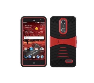 The FastSun Hybrid Case Phone Cover is a stylish and functional accessory designed specifically for the ZTE Grand X 4 X4 Z956 ZTE Blade Spark Z971 (2017). This dual hard and soft case cover will not only protect your phone from scratches but also give it an extra edge with its sleek design. The black-red color combination adds a touch of sophistication to your phone. The phone is not included, this is a separate accessory. With its kickstand feature, you can easily prop up your phone for hands-free viewing. Overall, this phone cover is a great investment to keep your device safe and stylish.