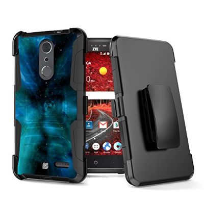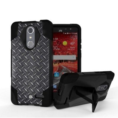 The Compatible with ZTE Grand X 4 Z956 / ZTE Blade Spark Z971 Rugged Heavy Duty Shockproof Case offers optimal protection for your phone. Its dual material hybrid design consists of a hard plastic cover over a soft silicone skin, providing protection against scratches and unwanted damages. The soft silicone skin also acts as a cushion against shocks and minor drops. The case is custom-molded to fit the ZTE Grand X 4 / ZTE Blade Spark, with precise cutouts for full access to all phone features. With its integrated kickstand, you can enjoy hands-free viewing in landscape mode. The case also includes a holster clip for additional carrying options.