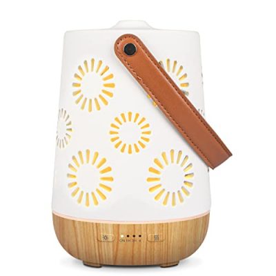 The Ceramic Cordless Essential Oil Diffuser is a portable and rechargeable aroma diffuser perfect for those who are always on-the-go. With its built-in 5000mAh lithium battery, you can take it anywhere with you, whether it’s a yoga studio, office, or even a camping trip. This ultrasonic diffuser operates quietly and has an auto shut-off safety system. It only takes 4 hours to fully charge and offers up to 6 hours of continuous mist. The diffuser also doubles as a night light, with a soothing LED light that can change to multiple colors. It’s a great gift idea for anyone who enjoys aromatherapy and relaxation.