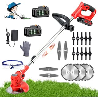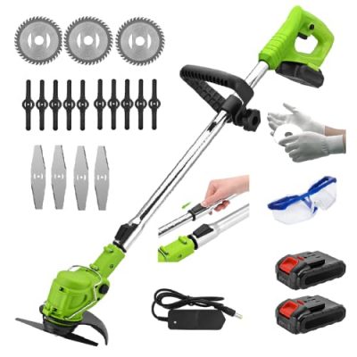 The Weed Trimmers,Edger Trimmer offers a powerful and efficient solution for garden and lawn trimming. With its high-capacity batteries, adjustable design, and three blade types, it provides versatility and ease of use. The lightweight construction and portability make it convenient for users to carry and operate. The double switch system ensures safety, especially around children. However, users should be cautious when using the plastic blades on tougher grass stems. Overall, this cordless electric trimmer is a reliable choice for maintaining a well-groomed garden or lawn.