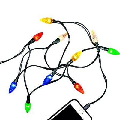 The Holiday LED Christmas Light Phone Charging Cable is a unique and festive way to charge your phone. With its 10 LED multicolored lights, this 50-inch long USB cable provides a cheerful glow when plugged in and in use. The cable is compatible with most iPhone models and iPads, making it a great gift for anyone during the holiday season. It is portable, durable, and easy to use with any charging port, whether it's in your computer or car. The festive atmosphere it creates is sure to bring joy to your surroundings. Get in the holiday spirit while keeping your phone charged!