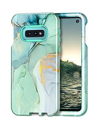 The Lamcase for Galaxy S10e 5.8 inch Case provides heavy-duty protection for your Samsung Galaxy S10e. Its rugged shockproof hybrid design combines a hard plastic back cover, a silicone TPU inner frame, and a hard PC bumper to protect your phone from accidental scratches and falls. The case is compatible with wireless charging and features precise cutouts for all buttons and ports, allowing easy access without any barriers. The raised lips provide additional protection for your camera and screen when the device is placed flat. With a fashionable design and a smooth, eye-catching back surface, this case is suitable for all ages. It is a great gift for friends or as a festive or birthday present. Available in a stylish Green Marble color.