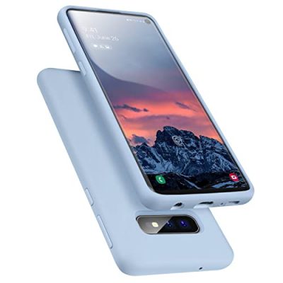The E Segoi Samsung Galaxy S10e Case is a liquid silicone gel rubber shockproof case that offers full body protection while remaining slim. It features a special design that fits snugly over the volume buttons, sleep/wake button, and curves of the device. The case has an elegant and stylish look, with a soft-touch finish that feels great and is easy to wipe clean. It supports wireless charging and comes with a 30-day money back guarantee and 6-month warranty. The case is only compatible with the Galaxy S10E 5.8 inch model and is available in a light blue color.