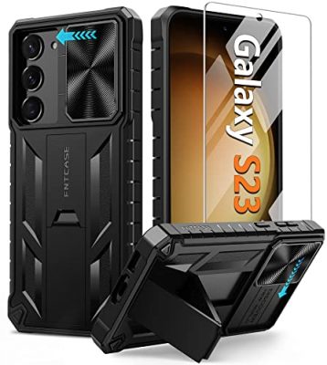 The FNTCASE for Samsung Galaxy S23 Case provides full-body protection with its premium hard PC and flexible TPU materials, along with a tempered glass screen protector. The case features a sliding window design to protect the camera lens and ensure privacy. It also includes a built-in kickstand for hands-free viewing. With its tire texture design and non-slip stripes, it provides a secure grip. The case is specifically designed for the Samsung Galaxy S23 5G, with precise cutouts for easy access to all ports and buttons.