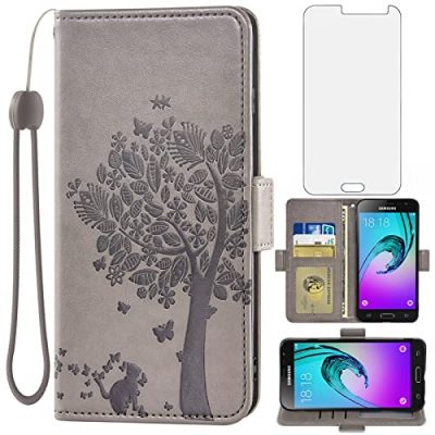 The Asuwish Compatible with Samsung Galaxy J3 2016/J 3 V/J36V/Sky/Amp Prime Wallet Case is a stylish and functional cell phone cover. It is compatible with select Samsung Galaxy J3 models and comes with a tempered glass screen protector and detachable wrist strap as free gifts. The case features 3 card slots to securely hold cards and cash, eliminating the need for a separate wallet. It also has a kickstand that can be converted into a multi-angle view for reading, watching videos, or video calling. The case is made with premium materials and offers excellent customer service, including a warranty for defective products. With a sleek gray color and a 4.5/5 customer rating, this wallet case is a great choice for protecting and accessorizing your Samsung Galaxy J3.