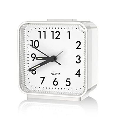 The Peakeep Small Battery Operated Analog Travel Alarm Clock is a reliable and functional alarm clock that is perfect for those who value simplicity. Its compact size, silent movement, and clear dial make it ideal for any nightstand, desk, or for travel purposes. The snooze/light button is a convenient feature for night-time viewing and provides an additional light sleep option. The only drawbacks are the potential inaccuracy of analog times and the loudness of the alarm. Overall, if you’re looking for a basic alarm clock that gets the job done without any extra frills, this is a great choice.
