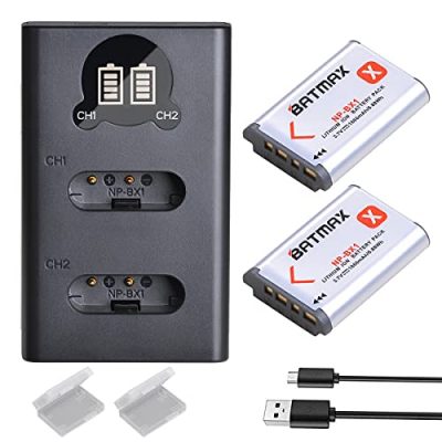 The FirstPower NP-BX1 Battery 2-Pack and USB Dual Charger is a reliable and convenient accessory for Sony ZV-1 Sony Cyber-Shot DSC-RX100 cameras and more. With a 1600mAh capacity, these lithium-ion batteries offer higher power to capture more exciting moments, replacing the original Sony NP-BX1 battery. The wide compatibility ensures the correct fit and function. The intelligent LED charger displays the charging status of each battery, while the dual charger allows for simultaneous charging. Thanks to its flexible charging options, including Micro-USB and Type-C inputs, you can power it up with various devices. The built-in multiple protection features ensure safety and reliability. Overall, this battery pack and charger provide an affordable and efficient solution for extended camera use.