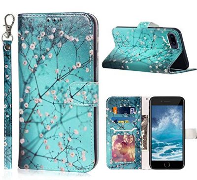 The Designed for iPhone 8 Plus Wallet Case is a stylish and functional accessory for your iPhone. It features a beautiful Plum Blossom design that is perfect for women, girls, and boys. The case is made of premium synthetic leather and has a soft TPU interior that provides all-around protection for your phone. It has a detachable wrist strap for easy carrying and built-in card slots and a money pocket for convenient storage of your ID, credit cards, and cash. The case also has a kickstand function for hands-free movie-watching or video-chatting. With easy access to all ports and controls and support for wireless charging, this wallet case is perfect for daily use and travel.