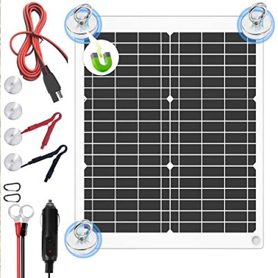 The Topsolar 10 Watt 12 Volt Solar Trickle Charger is a lightweight and durable solar panel designed for maintaining car, motorcycle, boat, and RV batteries. It features an excellent safety circuit to prevent overcharging and reverse charging, and its plug-and-play design makes installation convenient. The charger is applicable to all rechargeable 12v batteries and comes with a 12-month warranty. With its compact size and waterproof construction, this solar trickle charger is a reliable and portable solution for keeping your batteries charged. Score: 8.2/10