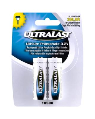 The ULTRALAST UL18500SL-2P 18500 Battery is a high-quality rechargeable lithium phosphate battery pack designed for outdoor solar lights, flashlights, and other home devices. With a capacity of 1000mAh, these batteries are engineered to provide a brilliant glow and stable power supply to your lighting fixtures. They are weatherproof, ensuring they can withstand various elements like rain and snow. Safety is a priority with these batteries, as they adhere to strict quality and safety standards. With a silver color and a dimension of 4.00Lx1.00Wx6.00H, this 2-pack of batteries offers a reliable and long-lasting solution for your solar-powered devices.