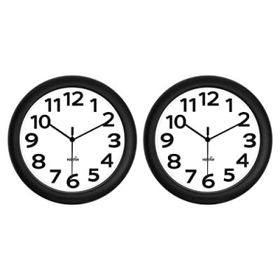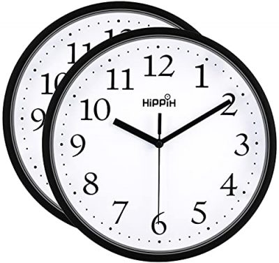 The HIPPIH 2 Pack Silent Wall Clock is a stylish and practical addition to any room. The large black bold numbers against the white face make it easy to view from any corner of the room. The precise quartz movements ensure accurate timekeeping, while the silent clock movement creates a peaceful environment for sleeping or working. The clock is easy to install with the back hook and is powered by one AA battery (not included). Its sturdy plastic case makes it easy to clean and keeps dust away. With excellent after-sale customer service, you can buy this clock with confidence in its quality. Overall, this wall clock offers a great combination of functionality and aesthetics.