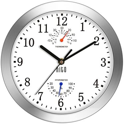 The hito 10 Inch Silent Wall Clock is a reliable and attractive timepiece. Its true silence, smooth second hand, and large numbers make it easy to read and suitable for various rooms. The clock’s modern design, with its silver aluminum frame and glass front cover, adds a touch of style to any space. However, some customers have reported issues with glare reflections and inaccurate temperature and humidity readings. Despite these minor drawbacks, the hito 10 Inch Silent Wall Clock is a great addition to any home or office, combining functionality and aesthetics.