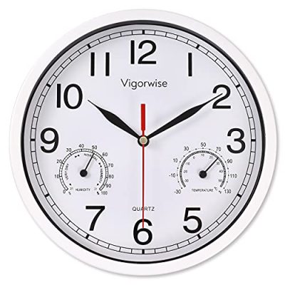 The Vigorwise 8 Inch White Wall Clock is a reliable and functional choice for anyone in need of a silent and accurate timepiece. With its easy-to-read numbers and built-in thermometer and hygrometer, it adds both convenience and style to any room. While the smaller size and plain design may not suit everyone’s taste, the clock’s lightweight construction and excellent customer service make up for it. Whether you need a clock for your kitchen, living room, bedroom, office, school, or classroom, the Vigorwise 8 Inch Wall Clock is a practical and attractive option.