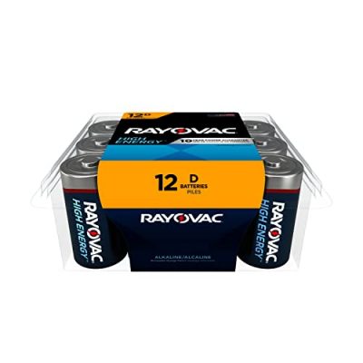 The Rayovac D Batteries are a reliable and cost-effective option for powering high-use devices such as toys, flashlights, and stereos. This pack contains 12 high energy alkaline batteries that are designed to prevent damaging leaks. They have been tested twice prior to shipment to ensure their quality. Made in the USA with US and global parts, these batteries are proudly produced in Fennimore, WI. With a shelf life of up to 10 years, you can trust that these batteries will hold their power even when stored for long periods of time. The color of the batteries is Blue/Grey and the dimensions of the pack are 6.20Lx4.80Wx2.45H.
