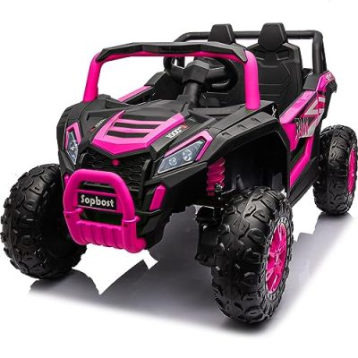 The sopbost 24v Ride On Toys for Kids Electric Vehicles Ride On Car is a fun and exciting toy that provides hours of entertainment for children. With its 24V rechargeable battery and 4 pcs 550 electric motors, this ride-on car offers powerful and continuous use. The 4 EVA rubber tires wheels make it suitable for various terrains, including grass, dirt, and moderate terrain. The car features a spacious seat with a safety belt and a front bumper for added safety. It can be operated in two driving modes – remote control for young children or manual driving for older kids. The car includes a range of features such as an MP3 player, USB port, and Bluetooth for playing music and providing a enjoyable driving experience. With its bright LED lights, double lockable doors, and attractive appearance, this ride-on car makes a great gift for birthdays and holidays. Overall, the sopbost 24v Ride On Toys for Kids Electric Vehicles Ride On Car offers a fun and safe driving experience for children.