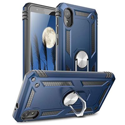 The TJS Compatible with Motorola Moto E6 Case is a heavy-duty phone case designed to protect the Moto E6 from drops and impacts. It features dual layers of shockproof TPU and solid PC materials for double protection. The case also has a built-in metal plate that allows it to be magnetically attached to a car mount holder for convenient hands-free use. The 360-degree rotating ring holder doubles as a kickstand, allowing for comfortable viewing of videos and movies. The case includes responsive button covers, precise cutouts, and raised lip protection for added convenience and safety. It comes in a stylish blue color and has a dimension of 9.10Lx4.70Wx0.40H. Overall, it offers great protection and functionality for the Motorola Moto E6.
