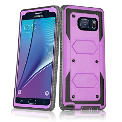The Asuwish Phone Case for Samsung Galaxy Note 5 is a hybrid phone case made of shock absorbing rubber and durable hard plastic. It offers excellent protection with raised bezel lips around the screen and camera, providing strong protection for your phone screen and camera lens in everyday wear and accidental drops. The rugged side textures ensure a safe and comfortable grip for the phone, while also supporting wireless charging. Compatible only with Samsung Galaxy Note 5, this phone case does not come with a built-in screen protector. The phone case is available in a stylish light purple color.