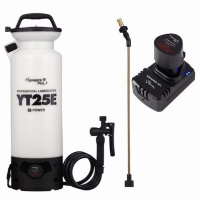 The Sprayers Plus YT25E Battery Sprayer is a versatile and reliable tool for all your landscaping needs. With its durable brass construction and high-grade Viton seals, this battery sprayer ensures long-lasting performance. The 12V Lithium-ion battery provides enough power to support up to 18 tanks of spraying per single charge. This lightweight and portable sprayer weighs only 6.5 lbs, making it easy to carry and transport. Its fast and easy-to-use design makes landscaping tasks a breeze. Whether you're spraying herbicides or fertilizers, this battery sprayer is a great addition to any toolbox. Say goodbye to manual pumping and enjoy the convenience of battery power with the Sprayers Plus YT25E.