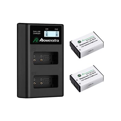 The Powerextra LP-E17 Batteries and USB Charger is a high-quality battery and charger set designed for Canon cameras. With a rating of 7.2V, 1350mAh, and 9.72Wh, these batteries provide longer battery life with no memory effect. The set includes two batteries and a smart charger that can charge both batteries simultaneously. The charger offers a rapid charging speed of 8.4V/0.8A output. One of the key features is the convenience of recharging the batteries using a USB cable and a power bank. The batteries also come with built-in intelligent chip protection for over-voltage, over-current, short circuit, high-temperature, and over-charge. Overall, it is a reliable and affordable aftermarket replacement for the Canon LP-E17 battery.