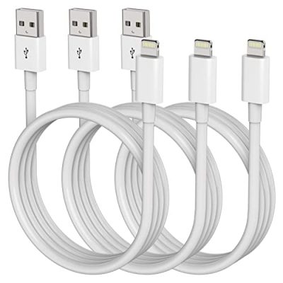 The iPhone Charger 3Pack 6ft is a set of long lightning cables that are Apple MFi certified. With premium quality four-core copper wire and a smart chip, these cables provide faster charging and syncing for your Apple devices. The ultra-durable design, including a reinforced connector and high-quality materials, ensures a long lifespan. These cables are compatible with various iPhone models as well as iPad, iPod, and AirPods. You get three 6ft cables in the pack, along with a 12-month warranty and 24/7 customer service. Overall, the iPhone Charger 3Pack 6ft offers reliable performance and great value for money.