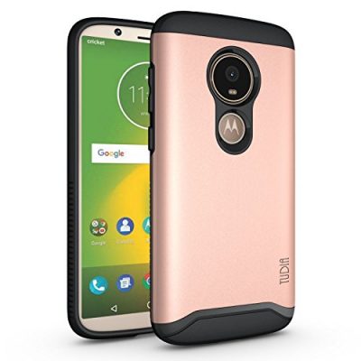 The TUDIA DualShield Designed for Moto E5 Play Case is a slim and rugged protective case for the Motorola Moto E5 Play (2018), Moto E5 Cruise, and Moto E5 Go. It features a shockproof TPU and polycarbonate combination for double protection from drops and scratches, as well as raised edges for added screen and camera protection. The precise cutouts allow easy access to buttons, and the slim design provides a comfortable grip. With its stylish rose gold color, this case offers both style and durability. Customer reviews praise its great design, perfect fit, sleek and trim appearance, and reliable phone protection. The TUDIA DualShield Moto E5 Play Case is a reliable and affordable choice for anyone looking to protect their device.