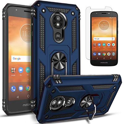 The Moto E5 Play Phone Case is a durable and stylish phone cover designed specifically for the Motorola Moto E5 Play, Moto E5 Go, and E5 Cruise. It comes with a tempered glass screen protector for added protection. The case features dual layers of shockproof TPU and solid PC, providing double protection against accidental drops, dust, and scratches. The built-in metal ring stand allows for a better view experience and is also compatible with car mount holders. With its tough construction and ability to survive a 6-foot drop test, this case ensures heavy protection for your phone. Precise cutouts allow easy access to all phone features. Overall, this case offers excellent protection while maintaining a sleek design.
