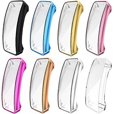 The 8 pack Screen Protector Case Compatible with Fitbit Inspire HR is designed to provide full coverage and protection for your Fitbit Inspire HR smartwatch. The waterproof full coverage design ensures that your watch face is completely protected, even against water droplets. The protective case covers all four corners and sides of your watch, preventing scratches and collisions. Made of high-quality soft TPU material, the case adds minimal bulk to your watch and offers easy access to all buttons. You can charge your Fitbit Inspire HR without removing the case. This pack comes in metallic bright colors that not only protect your watch but also add an aesthetic appeal. Overall, it offers reliable protection and a stylish look for your Fitbit Inspire HR.