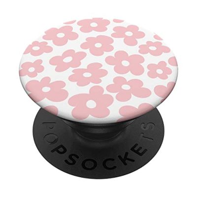 Enhance the aesthetic of your phone with the Aesthetic Pink Flowers Retro Daisy PopSockets Swappable PopGrip. This retro 60s style PopSocket features a pastel pink and white daisy pattern, adding a touch of vintage charm to your device. The PopGrip is designed with a swappable top, allowing you to switch out your PopTop for another design or remove it completely for wireless charging capabilities. It also serves as an expandable stand, making it easier to watch videos, take group photos, and engage in handsfree video calls. The advanced adhesive ensures easy removal and repositioning on most devices and cases. Please note that it may not adhere well to silicone, waterproof, or highly textured cases. Overall, this Aesthetic Pink Flowers PopSocket is a stylish and functional accessory for your phone.