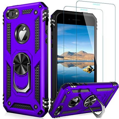 The LUMARKE Case with Tempered Glass Screen Protector is a heavy-duty protective phone case for the iPhone 5/5s/SE 2016. It comes with a 9H tempered glass screen protector and has passed a 16ft drop test, offering military-grade protection for your phone against shocks, scratches, and bumps. The case is designed for easy access to all ports and buttons and is compatible with all charging cords and cables. It also features a multi-functional metal ring kickstand that allows you to enjoy movies and is compatible with magnetic car mounts. With a lifetime warranty, LUMARKE guarantees to address any product quality issues within 24 hours. The purple case has a sleek design and measures 6.30Lx2.36Wx0.39H. Overall, it provides great value for its durability and convenience.