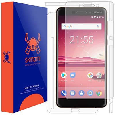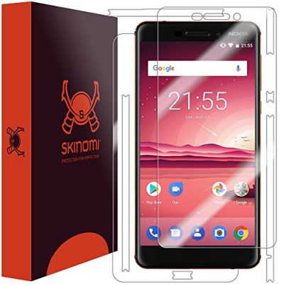 The Skinomi Full Body Skin Protector is a complete protective solution for your Nokia 6 (2018, Nokia 6.1). It includes a screen protector and a back cover, both made with high-quality, military-grade thermoplastic urethane that absorbs impact and resists scratches, punctures, and UV light. With its precise laser cutting, the Skinomi offers maximum coverage even on curved devices. Installation is easy and bubble-free, thanks to the included liquid solution that allows adjustments. The screen protector is optically transparent and provides an HD Clear display with a smooth glass-like surface and a responsive touch. The Skinomi Full Body Skin Protector comes with a lifetime warranty from the manufacturer and is proudly made in the USA.