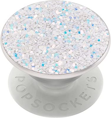 The PopSockets Phone Grip with Expanding Kickstand, also known as the "PopGrip," is a durable and versatile accessory compatible with iPhones, Samsung devices, and other smartphones. It acts as a anti-drop mechanism, allowing for one-handed use of your device, and a convenient kickstand to prop up your phone wherever you go. PopSockets are compatible with various accessories including wallets, cases, mounts, slides, and non-Popsocket cases for phones. You can change up your PopGrip style by replacing the top with one of our PopTops. The adhesive allows for repositioning as needed and works best on smooth hard plastic cases. The PopSockets Phone Grip comes in a Sparkle Snow White design that adds a touch of glamour to your phone.