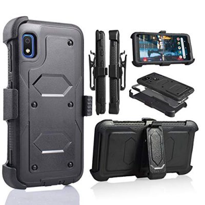 The A10E Case for Samsung Galaxy A10E offers ultimate protection for your device with its full body armor design. The hard outer shell made of polycarbonate material keeps your phone surface clean and free from scratches. The streamline rim construction of the TPU provides additional protection by absorbing impact drops. The soft inner lining cushions your device against everyday wear and tear. With a built-in screen protector, it prevents scratches without compromising touchscreen sensitivity. The case features a 360-degree rotating swivel detachable belt holster clip that can also be used as a kickstand for hands-free landscape positioning. It has precise cutouts for all button access and ports, and it comes with dust port covers. Available in black, this case is designed specifically for the Samsung Galaxy A10E.
