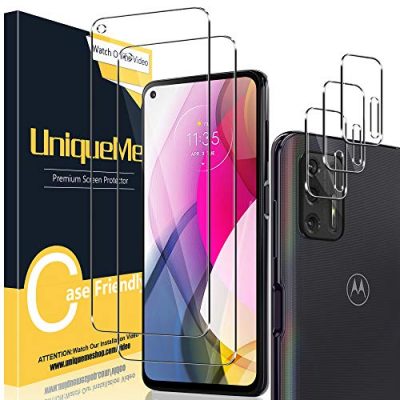 The UniqueMe Tempered Glass + Camera Lens Protector is designed specifically for the Motorola Moto G Stylus 4G 2021. Made of ultra-thin tempered glass, the screen protector and camera lens protector provide high touch sensitivity and bubble-free installation. The package includes an easy installation frame and a lifetime maintenance guarantee. With a transparent color and dimensions of 3.46Lx0.65Wx0.50H, it is the perfect fit for the Moto G Stylus 4G 2021. Customers have praised the product for its price, full-screen coverage, and easy installation process. However, some have mentioned that the included case is fragile and the lack of guide stickers for the camera application is a minor drawback. Overall, the UniqueMe Tempered Glass + Camera Lens Protector offers good quality and value for money.