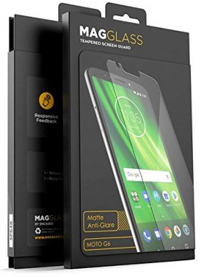 Preserve and protect your Moto G6 display with a genuine MagGlass Matte screen protector. This premium, full coverage screen guard is easy to install and built to last. It features embedded nano technology for crisp touch inputs, extreme scratch protection with a 9H hardness rating, and a reinforced shatterproof construction. The case-friendly design ensures full coverage without interfering with cases. Every set includes the tempered glass screen guard, microfiber cloth, dust remover, and alcohol pad. MagGLASS is a proud Encased brand, backed by the Encased Ltd. Lifetime Warranty.