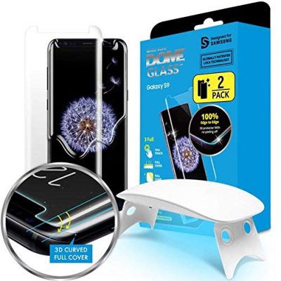 The DOME GLASS Galaxy S9 Screen Protector is a high-quality tempered glass shield designed to fully protect your Samsung Galaxy S9 screen. It utilizes liquid dispersion technology to evenly repair existing scratches and scuffs while creating a strong barrier against cracks and imperfections. With its full coverage and easy installation kit, this screen protector offers superior protection and a perfect fit. It is designed in California and comes with a limited lifetime warranty. The product has a customer rating of 4.2/5.
