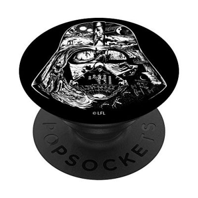 Elevate your phone or tablet experience with the Star Wars Darth Vader Helmet Saga Black and White PopSockets PopGrip. Officially licensed by Star Wars, this PopGrip features a swappable top that allows you to switch out designs or remove it for wireless charging. Its expandable stand lets you enjoy hands-free viewing of videos, group photos, FaceTime, and Skype. The advanced adhesive ensures easy removal and repositioning on most devices and cases. However, it may not stick to silicone, waterproof, or highly textured cases. This PopGrip is perfect for Star Wars fans and adds a touch of style to your mobile devices.