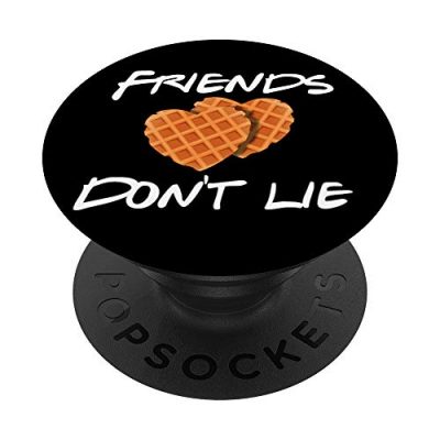 The Friends Don't Lie Funny Waffle Phone grips Gift PopSockets Swappable PopGrip is a hilarious and charming accessory for your mobile device. With its awesome graphic featuring the phrase 'Friends Don't Lie' and a cute waffle design, it's the perfect gift for men, women, kids, and anyone who loves Stranger Things. The PopGrip is swappable, allowing you to switch out the top for another design or remove it completely for wireless charging. It also has an expandable stand, making it convenient for watching videos, taking group photos, and hands-free communication. The advanced adhesive allows for repositioning on most devices and cases, although it may not stick to some silicone or highly-textured cases. Overall, it's a fun and functional accessory for any phone or tablet.
