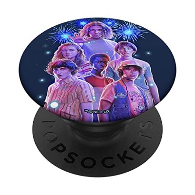 The Stranger Things Group Shot Fireworks PopSockets Swappable PopGrip is a must-have accessory for any fan of the popular TV show. Aside from its stylish design featuring various iconic elements from Stranger Things, this PopGrip offers versatility with its swappable top and expandable stand functionality. It allows for easy customization and convenient handsfree use for activities like watching videos or taking group photos. The advanced adhesive ensures secure placement on most devices and cases, although it may not be compatible with certain silicone, waterproof, or highly textured cases. Overall, this officially licensed accessory combines both style and functionality, making it an excellent addition to any Stranger Things enthusiast’s collection.