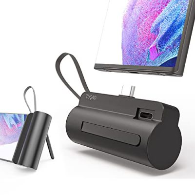 The TUQAO Portable Charger USB C is a compact and lightweight power bank that is designed for both Android and iPhone devices. With its built-in charging cable and cell phone holder, it offers convenience and versatility on the go. The 5200mAh capacity provides ample power to keep your devices charged throughout the day. The charger plugs directly into your phone, eliminating the need to carry a separate cable. It also features intelligent chip protection to safeguard against over-discharge, over-charge, short-circuit, and overheating. The TUQAO Portable Charger USB C is a handy and reliable companion for travel, daily commute, and everyday charging needs.