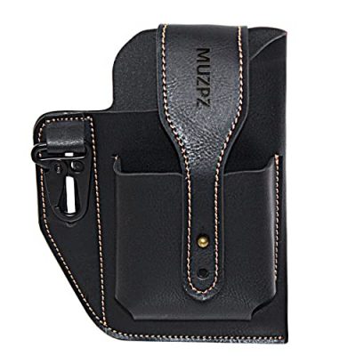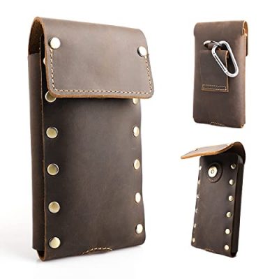 The Topstache Leather Phone Holster is a stylish and practical accessory for your large smartphone. Made from premium natural leather, this phone holster offers excellent protection and durability. It features a magnetic closure and a quick access hole for easy one-handed use. The double stitched belt loops allow you to wear it vertically on your belt, or you can use the metal hook ring to attach it to your backpack or belt loop. With two size options, it can accommodate most large phones with thick protective cases, including Otterbox defender. The Topstache Leather Phone Holster is not only functional but also makes for a great gift.